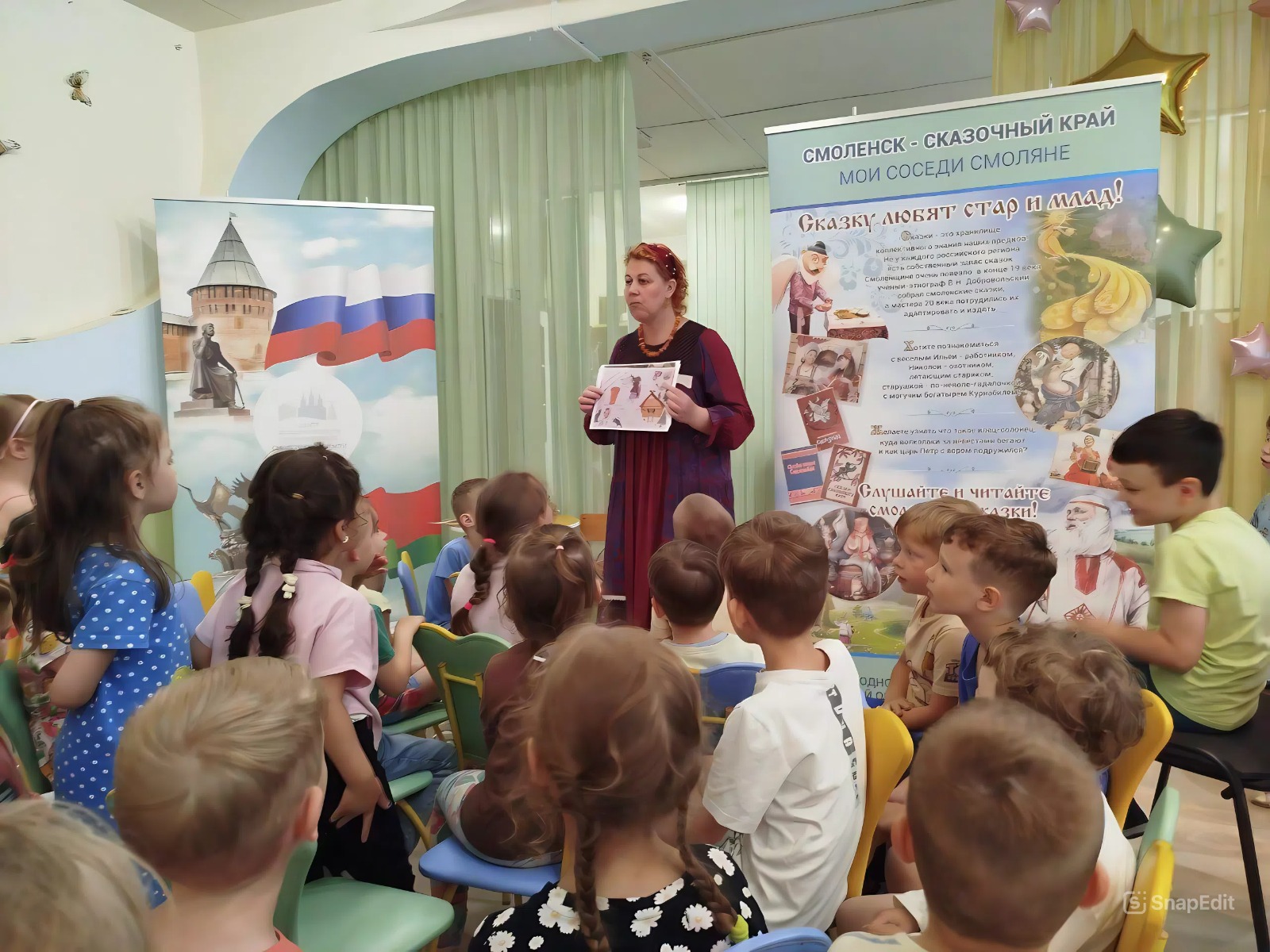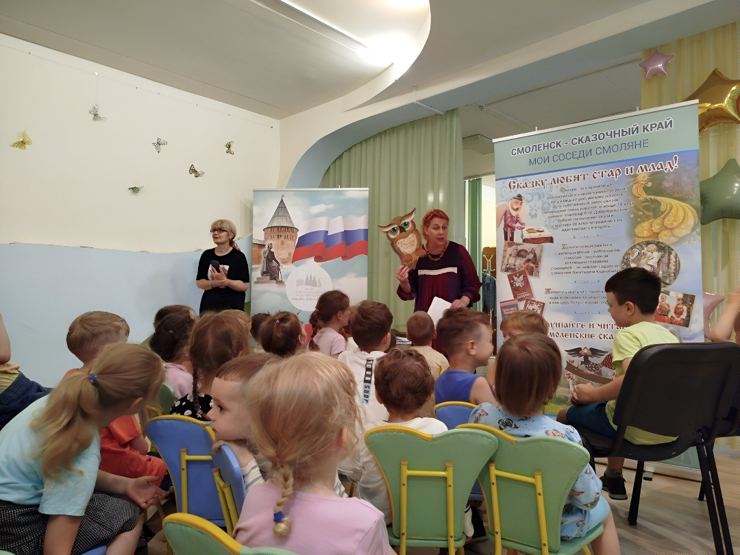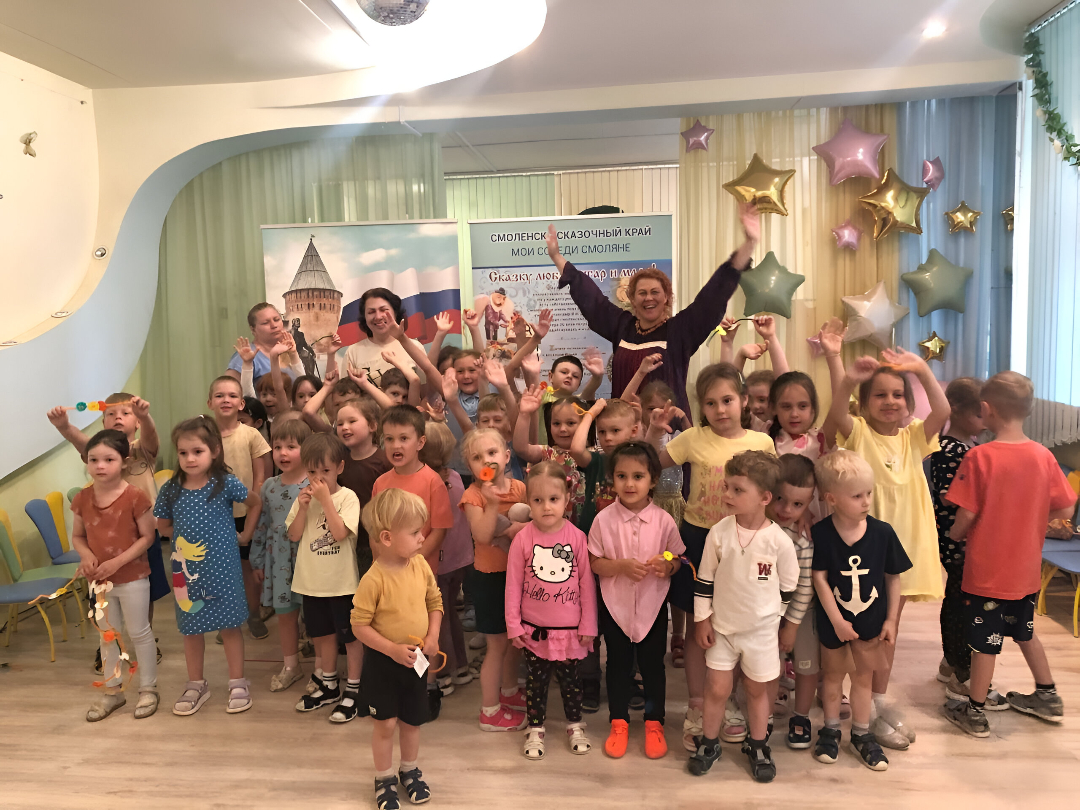 Сегодня представители Центра международного Сотрудничества Смоленской области порадовали юных минчан интерактивной программой «Смоленская сказка пришла в гости». Летающий дед, птица гамаюнка, сад-виноград и Баба Яга ожили в играх, сказках, прибаутках, которые сыпались, как из рога изобилия. За окном шумела непогода, а в музыкальном зале «Дошкольного центра развития ребёнка №511» г.Минска было тепло и весело.